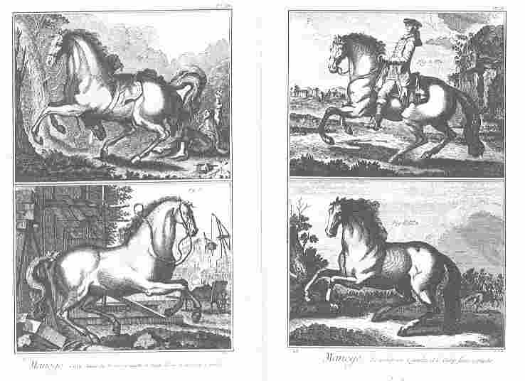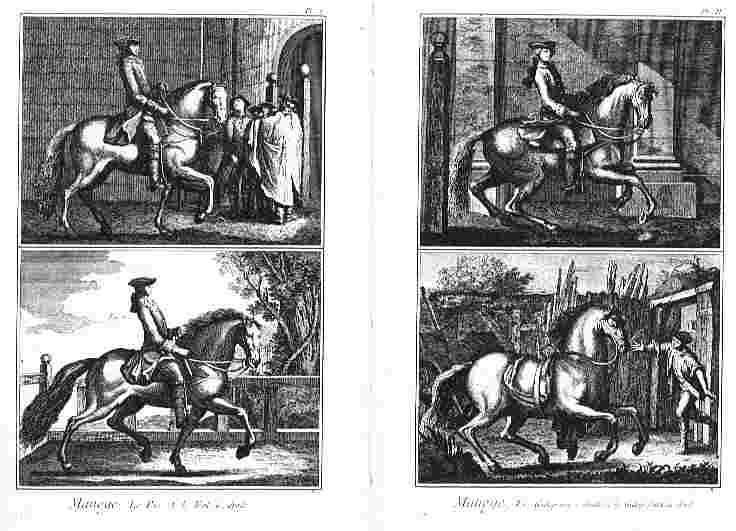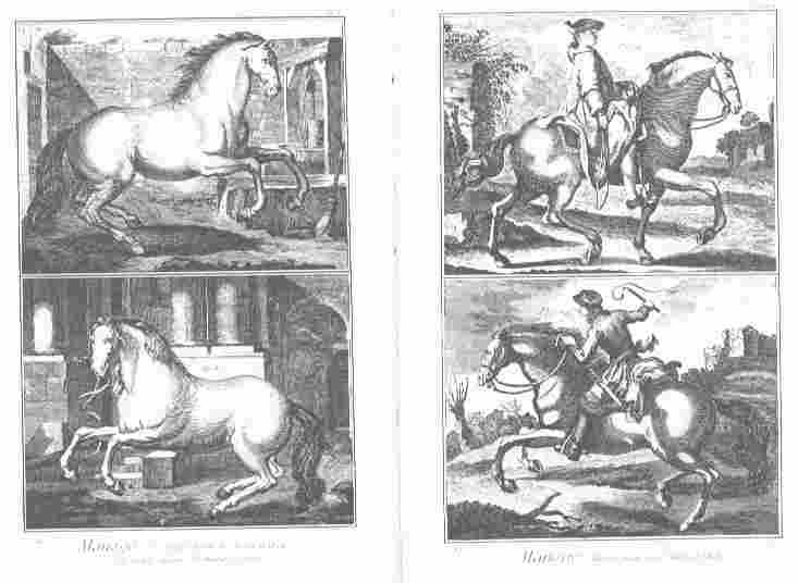 - Bild rechts: La carriole, Lecon du piafer dans les piliers - Die Kapriole und eine Piaffe-Lektion in den Pilaren
