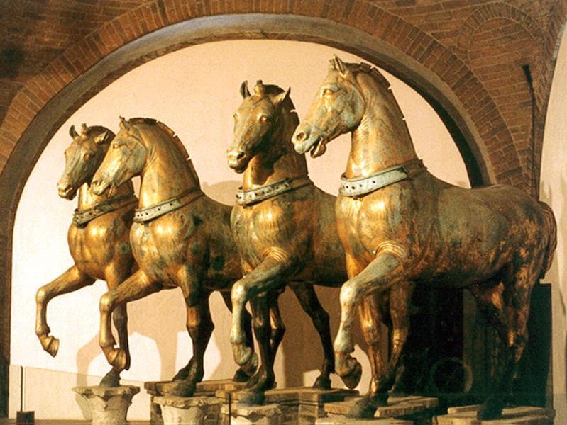 Das Pferd hat wenig Ausdruck und auch Karl V sitzt zwar gerade aber er macht vielleicht wegen seines fortgeschrittenen Alters keine allzu gute Figur auf dem Pferd. Vielleicht wollte der Künstler aber gerade dies darstellen. Zu welcher Ausdrucksungskraft die bedeutenden Künstler der Renaissance bei Pferdedarstellungen fähig waren, zeigt seine Rötelzeichnung Tizans, aber auch die drei folgenden Bilder. Leonardo da Vinci - Studie für ein Reiterstandbild Rubens - Raub der Töchter des Leukippos Die Quadriga von San Marco in Venedig |