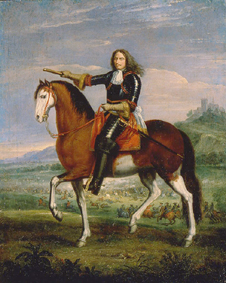 Rembrandt - Polnischer Reiter Rembrand hat von der polnischen Reiterei wohl nicht viel gehalten, sonst hätte er diesen unbekümmerten Bogenschützen nicht auf eine solche abgeklapperte Maehre gesetzt, die kurz vor dem Niederbruch zu stehen scheint. Rene Antoine Houasse - Louis XIV - 1679 abgesehen von Einelheiten des Kopfes ein gelungenes Pferd, leider sitzt der Reiter nicht an der richtigen Stelle. Auch Houassa scheint keine eigenen reiterlichen Erfahrungen zu haben, er hätte sonst den Reiter nicht auf dem Hals des Pferdes plaziert. Auch die folgenden vier Bilder weisen grobe Mängel auf, die offenbar weder dem Maler noch dem Käufer bzw. dem Abgebildeten aufgefallen sind. |