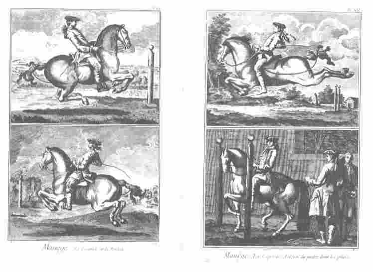 - Bild rechts: La carriole, Lecon du piafer dans les piliers - Die Kapriole und eine Piaffe-Lektion in den Pilaren